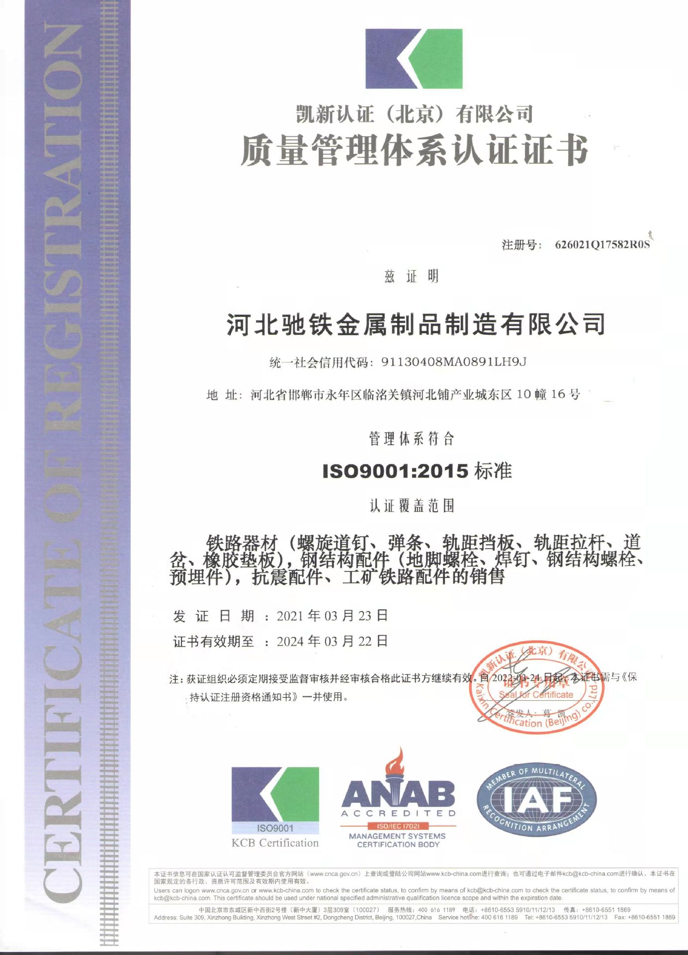 主要產(chǎn)品:鐵路配件、行車配件、工礦配件、魚尾板、道釘、壓軌器、軌道壓板、軌距拉桿、護軌扣板、T型螺栓、魚尾螺栓、彈條、軌距擋板